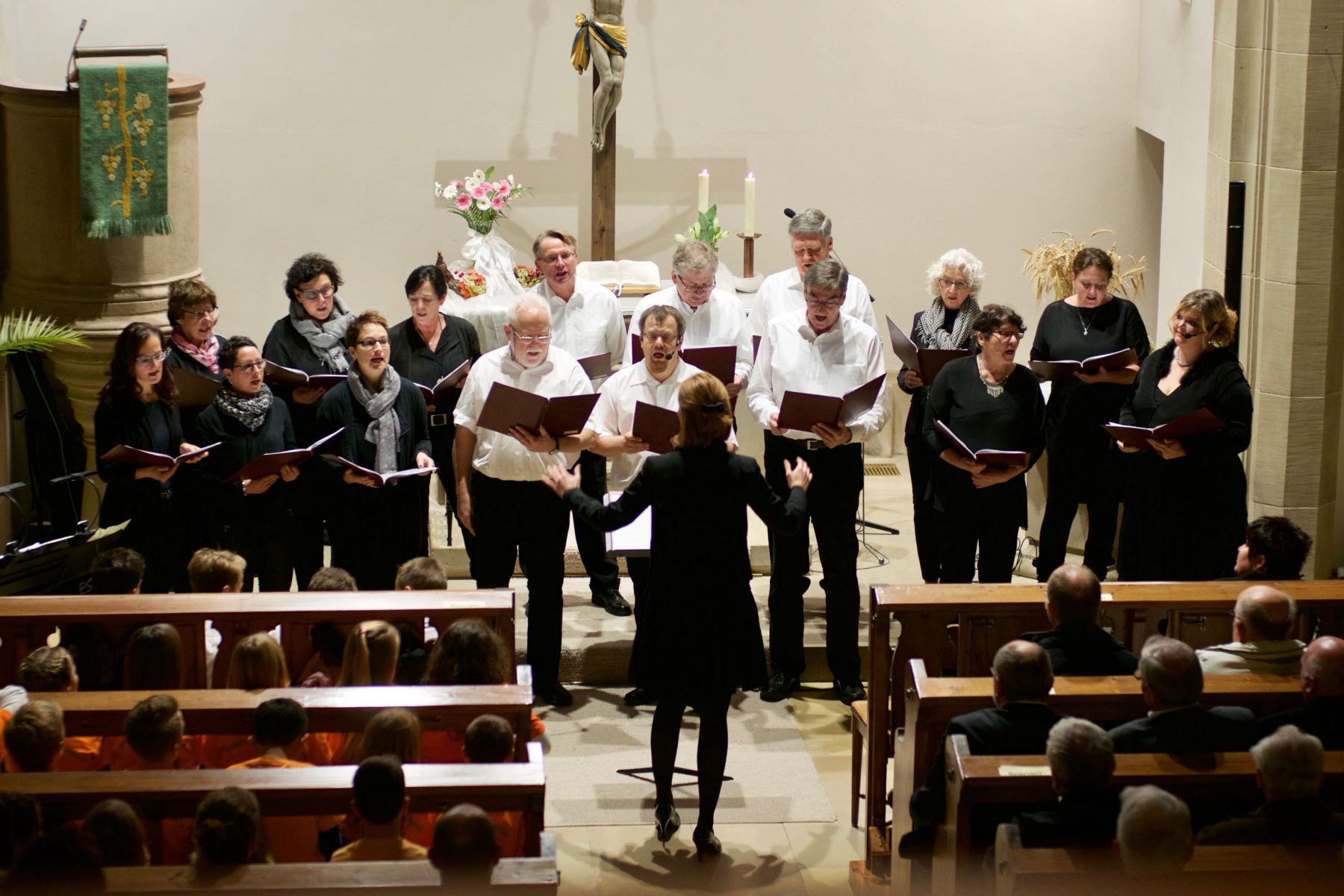 Die evangelische Kirchengemeinde Massenbach-Massenbachhausen veranstaltete in der Massenbacher Georgs-Kirche ein „Konzert der Chöre“. Unser gemischter Chor MEZZOFORTE gestaltete zusammen mit einem Gitarrenensemble der Musikaschule Schwaigern bestehend aus Massenbacher Schülern, dem Musik- und Gesangsquartett Take Fo(u)r Hearts, dem Projekt-Männerchor aus Gesamt-Schwaigern und dem Chor der Grundschule Massenbach das Programm.